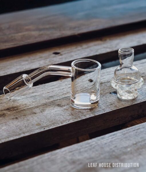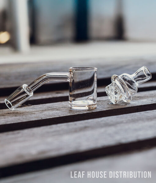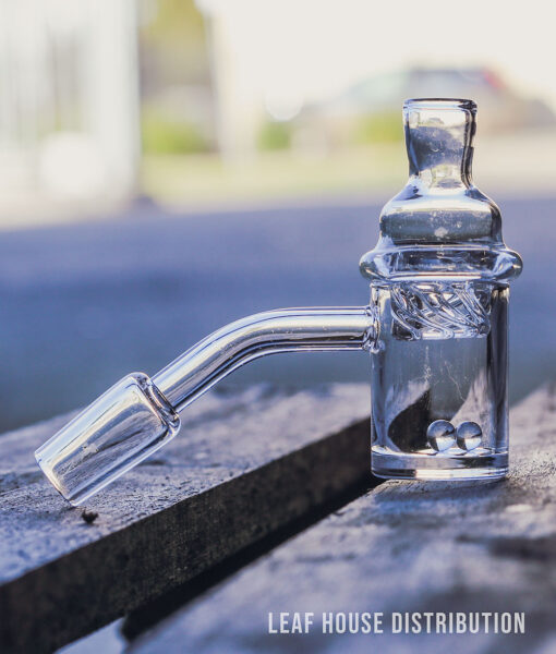 This 5-piece set features a 25mm glass bucket with a 45-degree bend, a matching cyclone-style carb cap, and two rotating glass inserts. The directional cap includes six airflow channels to create a spiralling motion, helping to maintain movement inside the chamber. The angled design is suitable for setups where a 45° joint is preferred.WHY CHOOSE THIS SET?