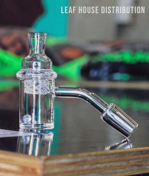 With a precisely angled banger and directional airflow control, this set supports improved motion, coverage, and fluidity in compatible glassware. The cyclone cap works in tandem with the included pearls to promote rotation, helping distribute materials efficiently throughout the chamber. The 45-degree joint offers alternative compatibility compared to the standard vertical design.KEY FEATURES