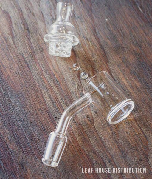 - COMPLETE 5-PIECE SET: Includes angled 25mm banger, directional cyclone cap, and 2 × glass pearls.