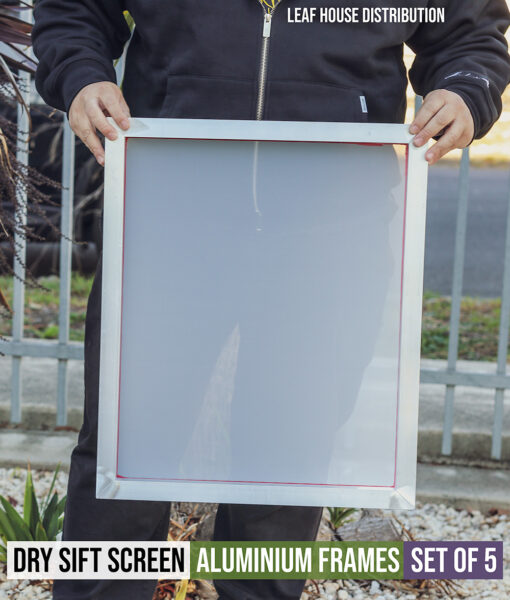 The Dry Sift Screens – Aluminium Frames – Set of 5 is a professional-grade separation system designed for the efficient dry sifting of plant-based materials. Each screen features a durable aluminium frame and tightly stretched polyester mesh, providing long-lasting performance and consistent filtration. This set includes five screens with micron ratings of 45µ, 73µ, 90µ, 120µ, and 220µ, offering comprehensive options for material refinement.
