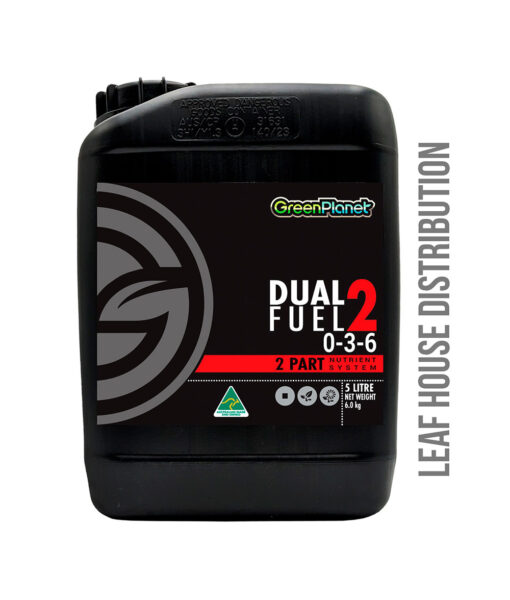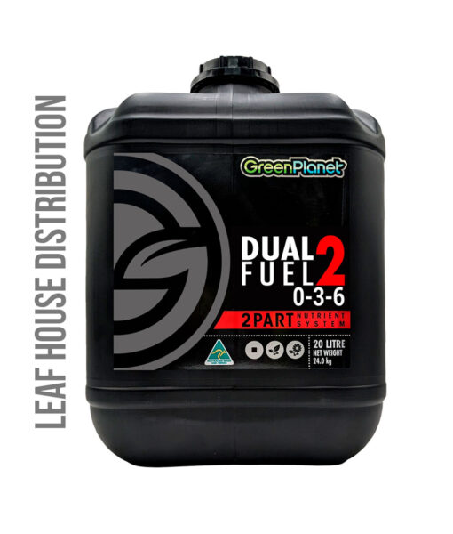 Dual Fuel Part 2 by Green Planet is the bloom-phase nutrient in their 2-part system, providing plants with essential phosphorus and potassium to drive flower growth and resin production. When used in combination with Dual Fuel Part 1, it creates a complete nutrient solution that is easy to apply and highly effective. It ensures that plants receive the necessary nutrients to thrive during the flowering stage, promoting larger, denser buds and improving overall harvest quality. Perfect for use in soil, coco, or hydroponic systems, Dual Fuel Part 2 is a reliable choice for any grower looking to maximise their crop’s potential.