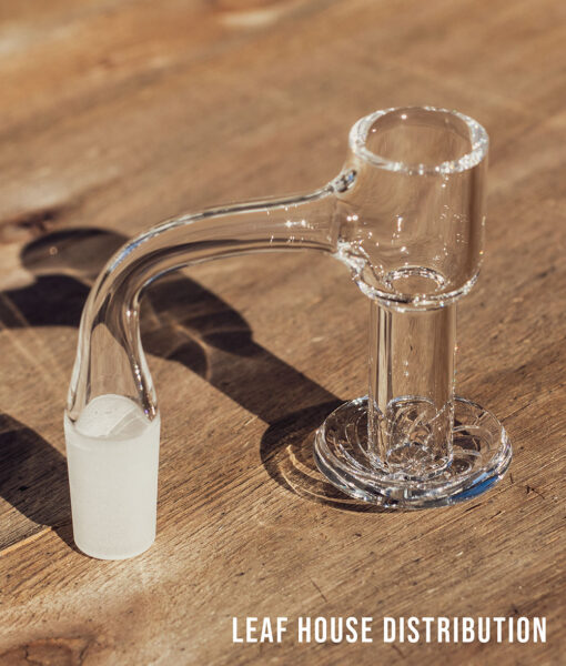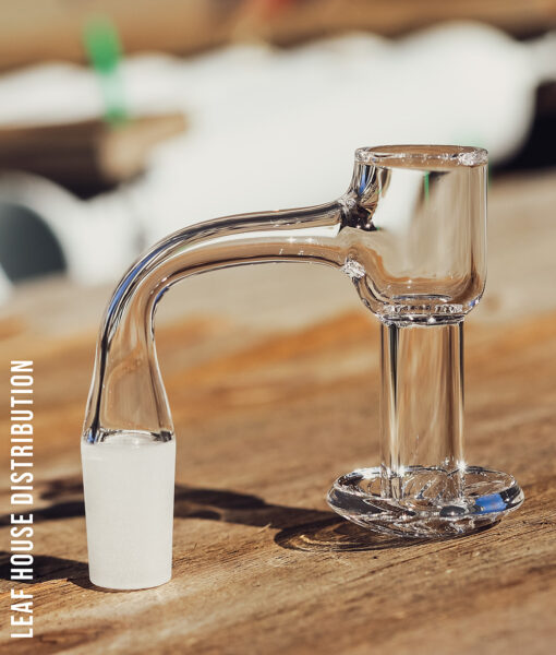 This full weld blender-style quartz banger is built for performance and versatility. Featuring a widened blender disc at the base, it promotes directional airflow when used in compatible setups with spinning components. The seamless glass weld between the bucket and joint provides added structural strength while preserving a clean aesthetic profile.