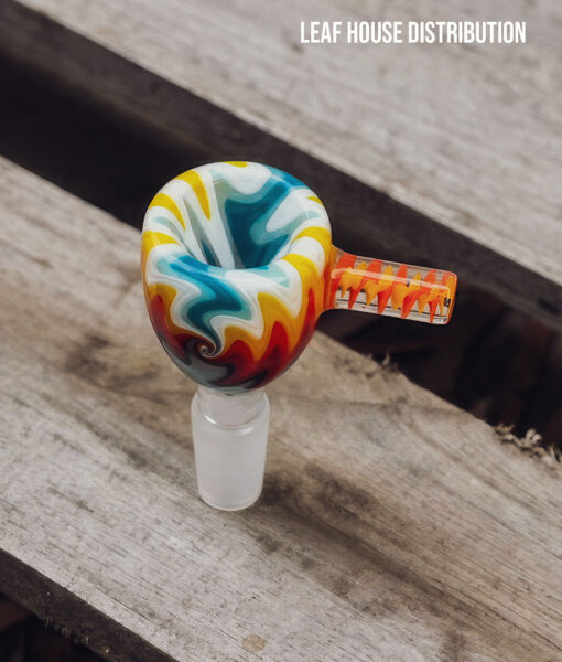 This swirl burst glass bowl showcases vivid spiral colour work and a straight side handle for easy grip and clean removal. Featuring a 14mm joint and a wide top opening, it brings personality and function to compatible glassware setups.WHY CHOOSE THIS GLASS BOWL?
