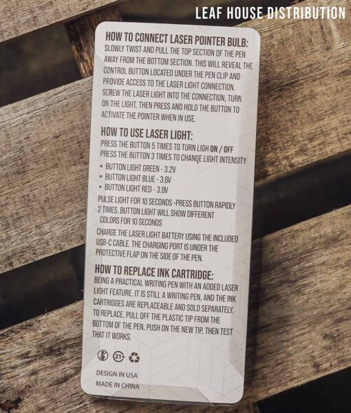 This multifunctional device is styled like a classic pen but includes concealed features that make it a versatile tool. It functions as a reliable ballpoint pen with a replaceable ink cartridge, while also incorporating a concealed upper cavity that houses a threaded connection for attaching compatible laser pointers or lights (sold separately).The hollowed-out top section is press-fitted and can be gently wriggled off to reveal the threaded port. A soft rubberised tip caps this upper section, adding a subtle finish. The internal battery is rechargeable via USB-C, offering convenient and discreet functionality within a compact design. Ideal for professionals, educators, or users seeking a clean multipurpose writing and light tool.WHY CHOOSE THIS PEN?
