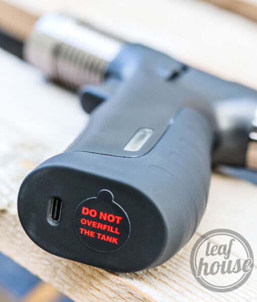 - To refill, ensure the torch is off, then insert the butane nozzle into the refill port and press gently until the tank is full.